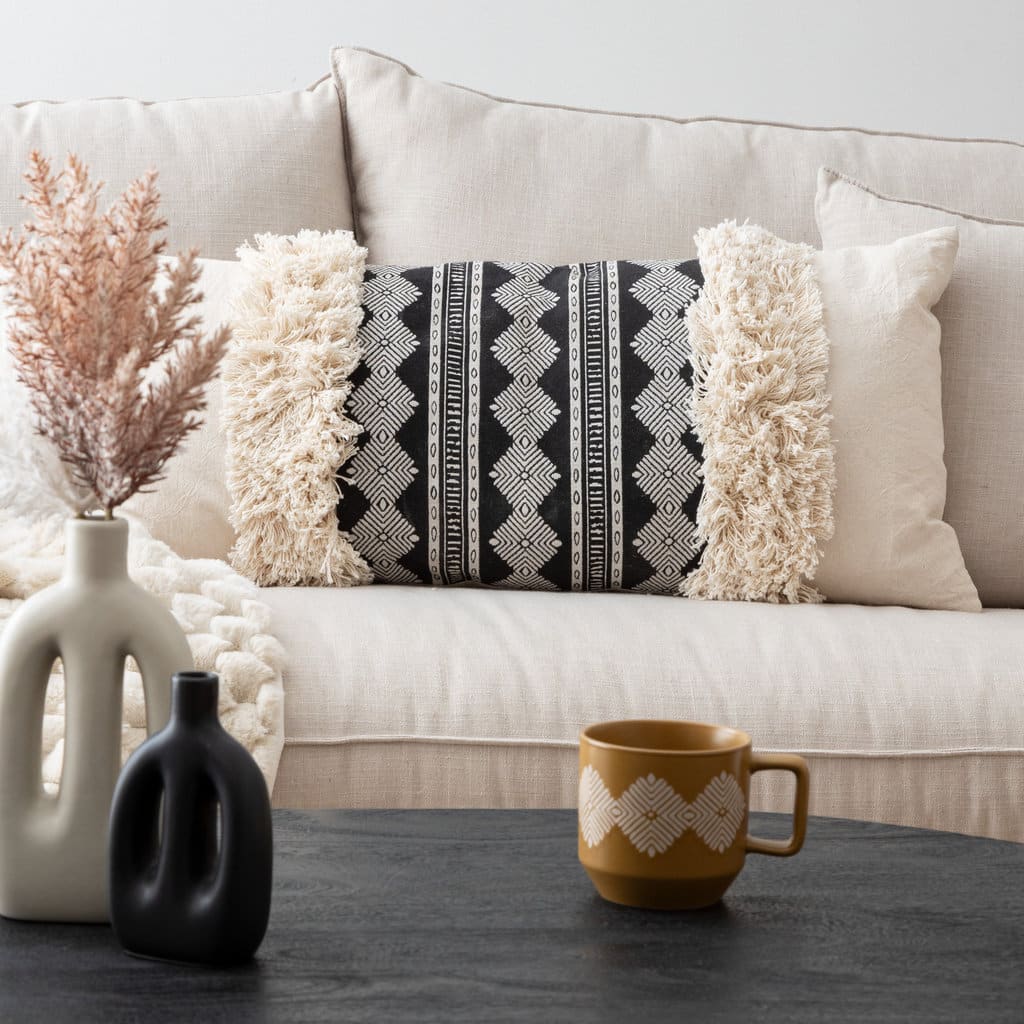 כרית INU מלבנית עם טקסטורת טוּפט – 35×75 ס"מ. כרית נוי בעיצוב בוהו עדין בגווני שמנת, עם טקסטורת טוּפט (Tufted) ודוגמת זיגזג ג'קארד ליצירת מראה עשיר ומחבק. אידיאלית להוספת חמימות ושכבת טקסטיל טבעית לספה, מיטה או כורסה. מידות: 75 × 35 ס"מ, חומר: כותנה ופוליאסטר צבע: שנהב, מתאימה לסגנונות עיצוב טבעיים, נורדיים ובוהמיים. פריט שמשלים כל חלל ברכות וטקסטורה.