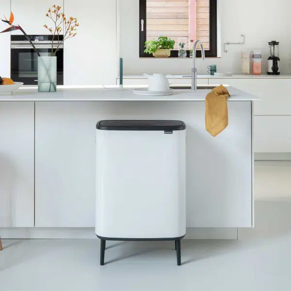 פח טאץ’ למטבח דגם BO של מותג ברבנטיה בצבע לבן מט בעיצוב מודרני, יוקרתי ומיוחד.