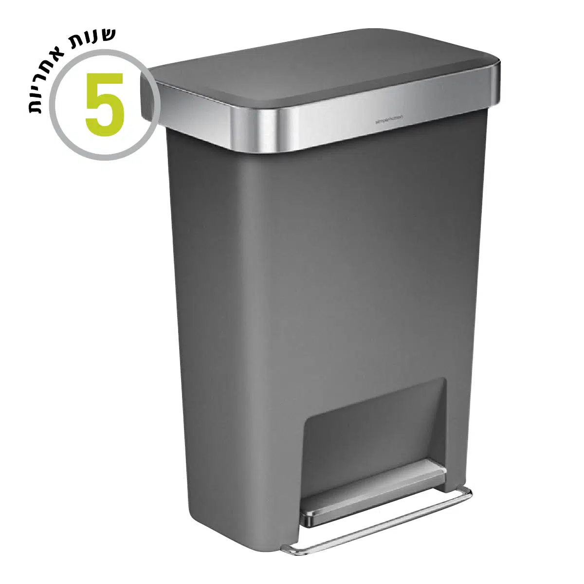 פח פדל מלבני דגם למטבח של מותג “סימפל יומן”, עשוי פלסטיק ונירוסטה בצבע אפור מט בעיצוב מודרני, יוקרתי ומיוחד.