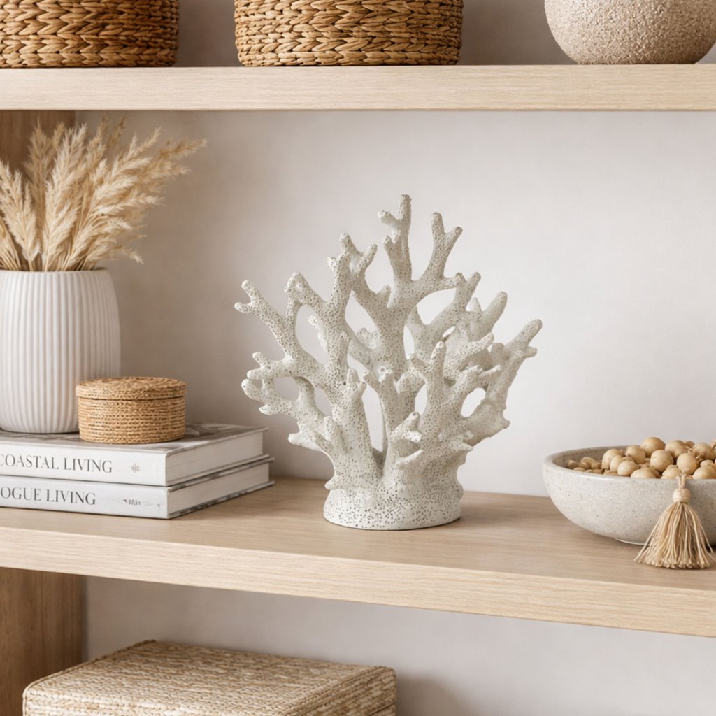 אלמוג דקורטיבי, פסלון השראה מהים אלמוג דקורטיבי בעיצוב טבעי ואלגנטי, בהשראת עולם הים והחופים. הפסלון עשוי מחומר איכותי בגימור בהיר עם טקסטורה עדינה המדמה אלמוג אמיתי, ומוסיף עומק ועניין לכל חלל. האלמוג משתלב באופן מושלם על מזנון, מדף פתוח, קונסולה או שידת צד, ויוצר נוכחות רגועה בסגנון חוף, בוהו או מודרני, טבעי. אידיאלי כפריט דקורטיבי עצמאי או כחלק מקומפוזיציית עיצוב עם ספרים ואקססוריז משלימים. גובה 30ס"מ.