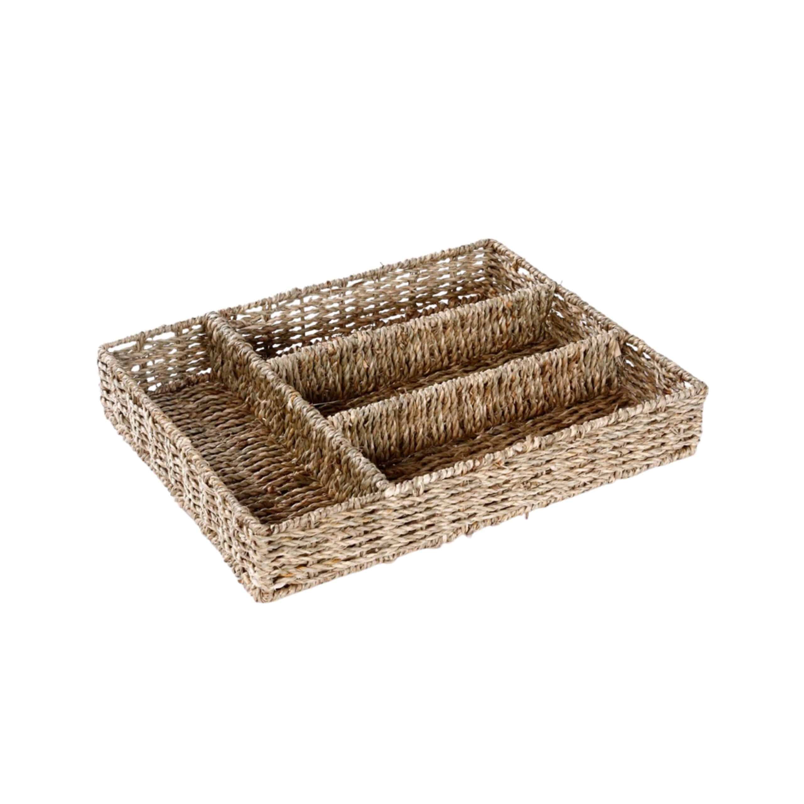 מחלק סכום בעיצוב טבעי וחמים, עשוי חבל קש קלוע. בעל צורת מלבן קלאסית עם תאי חלוקה נוחים לסידור סכום, מפיות או אביזרים קטנים. מתאים לשימוש יומיומי במטבח, לאירוח או כתוספת דקורטיבית לשולחן. אידיאלי לשולחן אוכל, מטבח או פיקניק מידות: אורך 35 ס"מ | רוחב 28 ס"מ | גובה 6 ס"מ