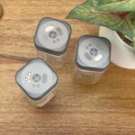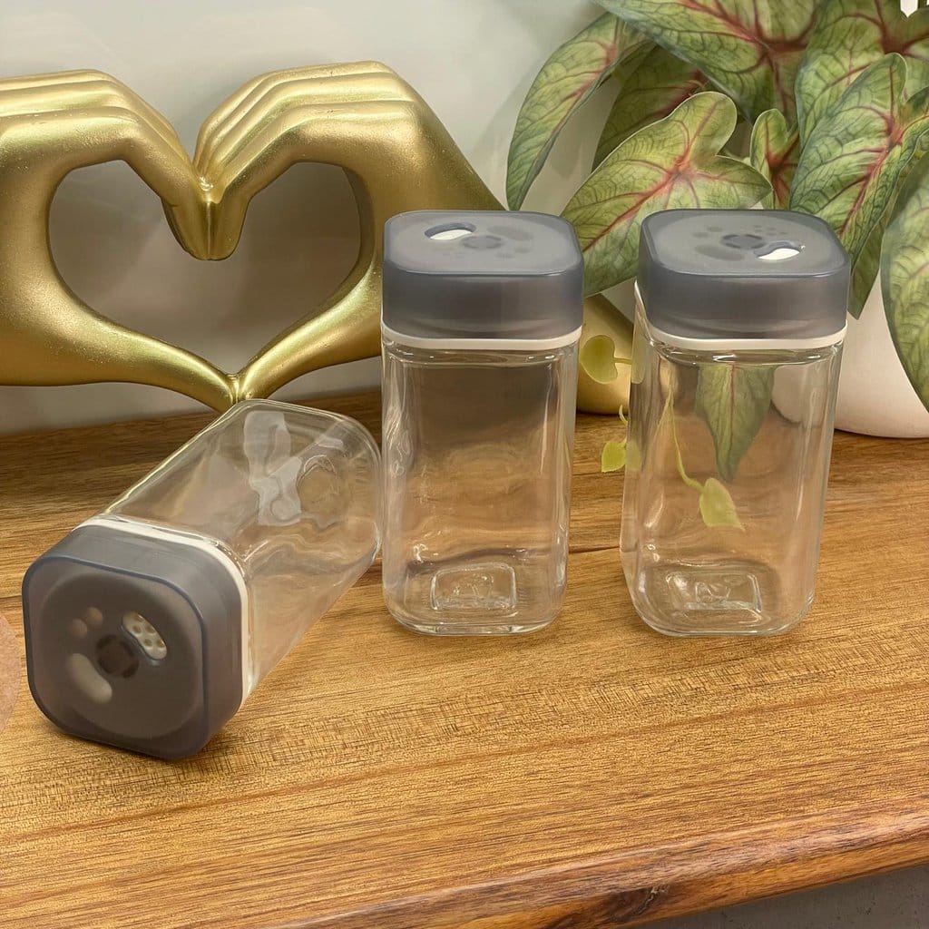 מלח/פלפל מזכוכית עם מכסה מסתובב 3 מצבים אלגנטי ואיכותי של מלחייה או פלפלייה מזכוכית שקופה, עם מכסה פלסטיק מסתובב בגוון אפור מט. המכסה כולל 3 מצבי פיזור לבחירה – פתחים בגדלים שונים להתאמה מושלמת לתיבול מדויק ונוח. העיצוב המרובע והנקי משתלב נהדר על שולחן האוכל, במטבח או באירוח, והזכוכית השקופה מאפשרת זיהוי קל של התוכן. גובה: 10 ס"מ, אורך/רוחב: 4.5 ס"מ, חומר הכלי: זכוכית שקופה חומר המכסה: פלסטיק איכותי עם מנגנון סיבוב. כולל: 1 יחידות, שליטה מדויקת בתיבול עם 3 פתחים לבחירה. אידאלי לשימוש יומיומי וגם למראה מעוצב ומסודר על שולחן האירוח.
