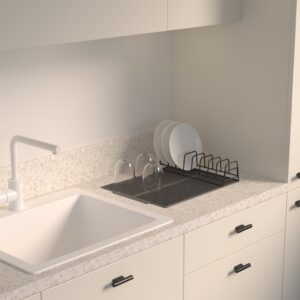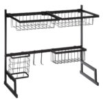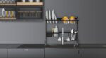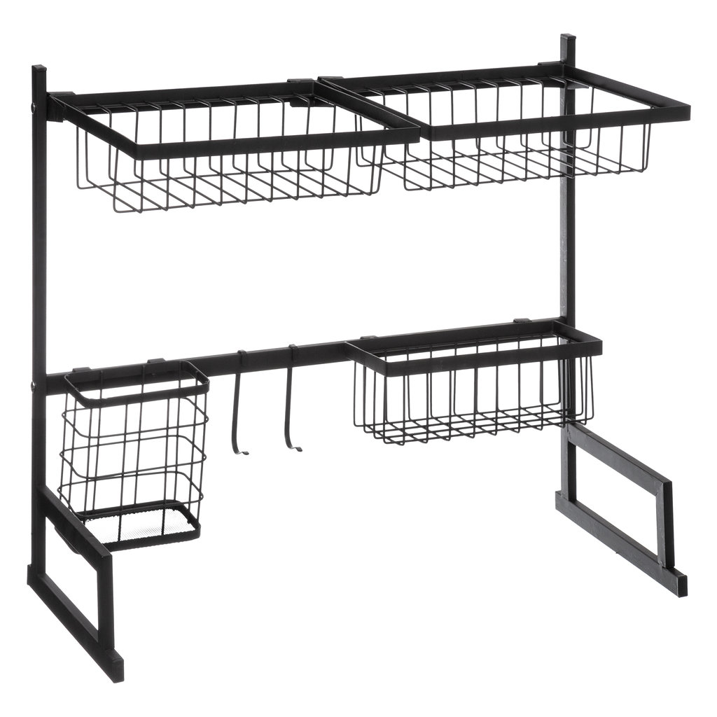 מתקן ייבוש כלים דו-קומתי מעוצב מפלדה בצבע שחור, עם ארגון יעיל למטבח ולאחסון ליד הכיור. צבע: שחור, חומרים: פלדה , מידות: אורך 58 ס"מ, עומק 30 ס"מ, גובה 51.5 ס"מ, משקל: 2.98 ק"ג