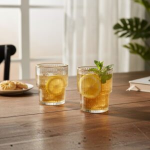 זוג כוסות זכוכית פס זהב 320מ”ל