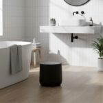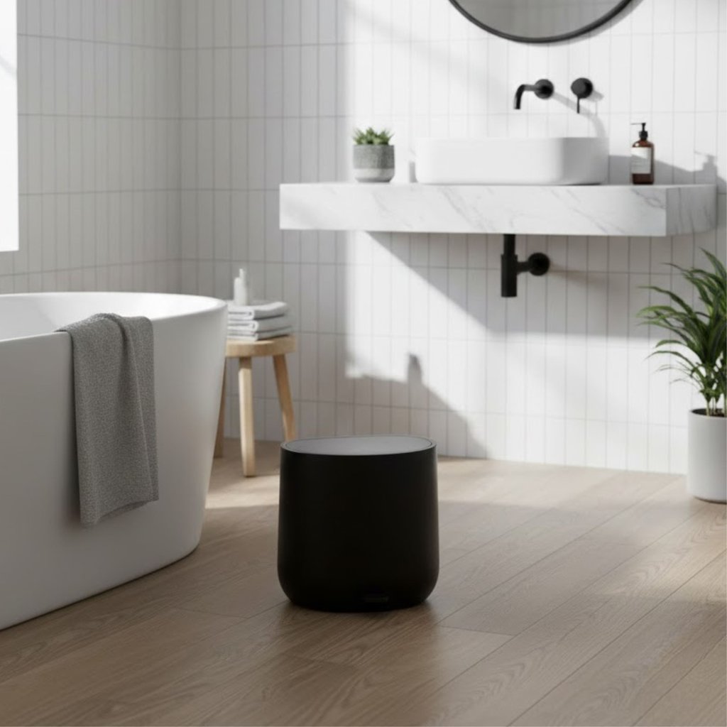 פח אשפה בנפח 5 ליטר בעיצוב חצי עגול, המותאם למיקום צמוד קיר לחיסכון במקום. הפח מצויד במנגנון טריקה לסגירה שקטה ואיטית של המכסה וכולל דוושת רגל לפתיחה נוחה. הוא מגיע בגימור שחור מט נקי ובמבנה מעוגל, המשתלב בקלות בחללי רחצה ושירותים ומהווה פתרון פרקטי ואסתטי לשמירה על הסדר. מידות: אורך 26 ס"מ | גובה 26ס"מ | במצב פתוח 42ס"מ | עומק 19ס"מ|עם פדל 23 ס"מ.